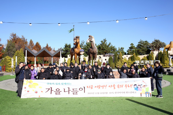 한국노총 좋은친구산업복지재단(이사장 김동명, 이하 ‘복지재단’)은 11월 10일(월) 오전 11시, 서울 강서구 장애인 거주시설 ‘샬롬의 집’ 소속 장애인 및 사회복지사, 자원봉사자 등 37명이 함께하는 「샬롬의 집과 함께하는 2025년 가을나들이-지금 이순간, 가을 속의 우리」행사를 렛츠런파크 서울(포니랜드)에서 진행했다.